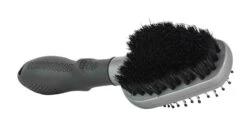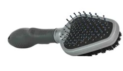 La double brosse de toilettage est une brosse 2-en-1 avec un cÎté à poils durs et un cÎté à poils souples pour le toilettage et le lustrage du pelage.