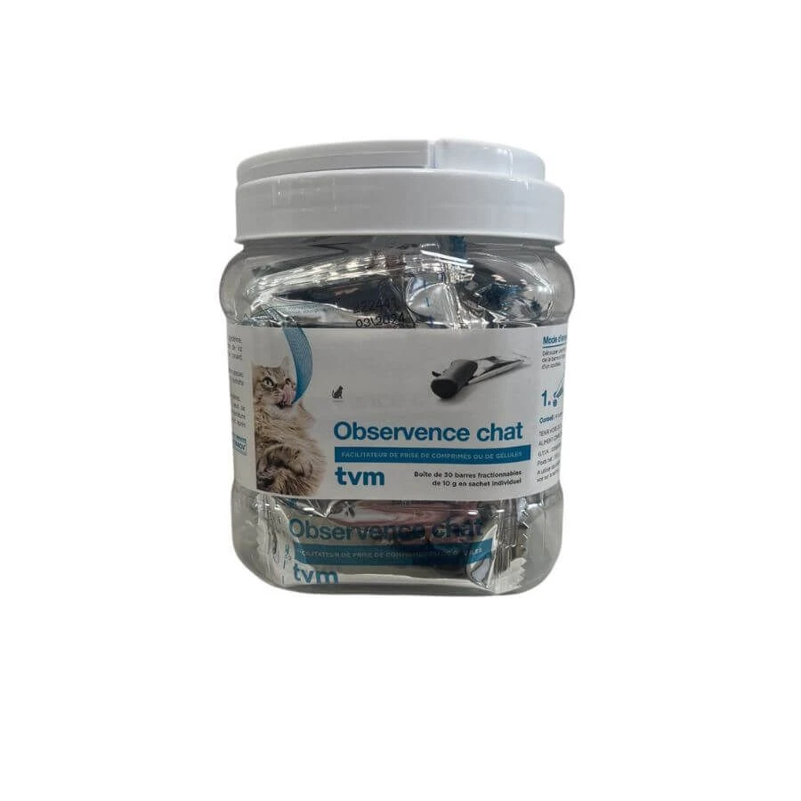 OBSERVENCE est un aliment complĂ©mentaire pour votre chat qui permet dâenrober et de dissimuler comprimĂ©s ou gĂ©lules pour en faciliter la prise. Lâodeur et la saveur correspondent parfaitement au goĂ»t du fĂ©lin et la texture empĂȘche lâanimal de dissocier le comprimĂ© ou la gĂ©lule de la boulette formĂ©e.