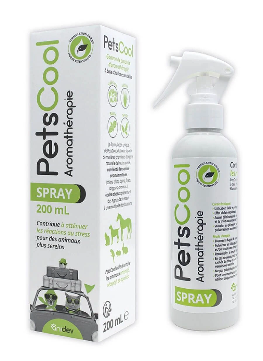 PetsCool est un mĂ©lange d’huiles essentielles de valĂ©riane, de vĂ©tiver, de sauge et de basilic qui va permettre d’attĂ©nuer les situations de stress chez les mamifĂšres. Câest un produit dâaromathĂ©rapie par inhalation pour animaux. GrĂące Ă son mode dâaction non spĂ©cifique, PetsCoolŸ nâest pas spĂ©cifique Ă une espĂšce : PetsCoolŸ convient Ă lâensemble des mammifĂšres (chiens, chats, rongeurs, lapins, chevaux…) et aux oiseaux. PetsCool permet Ă tous les animaux de vivre plus sereinement ensemble.