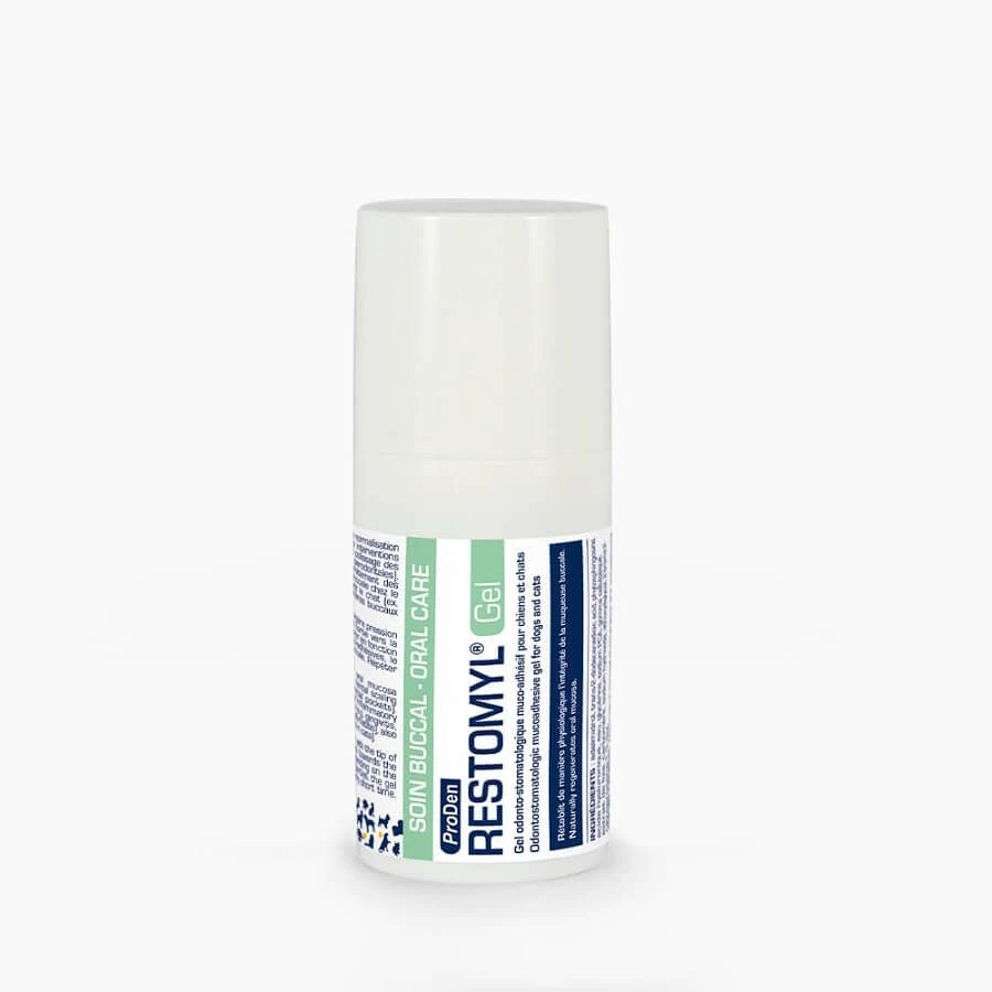 Le gel Restomyl de chez ProDen est un gel buccal conçu pour rĂ©tablir l’intĂ©gritĂ© de la muqueuse buccale de votre chien ou de votre chat. il s’utilise en associtation Ă des traitements ou interventions en cas de gingivite.