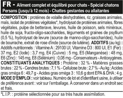 Pendant la croissance,le chaton Persan acquiert un pelage long,dense et soyeux,caractĂ©ristique emblĂ©matique de cette race de chat. L’aliment Persan Chaton avec une teneur adaptĂ©e en protĂ©ines et un Ă©quilibre prĂ©cis de vitamines et de minĂ©raux (dont du calcium et du phosphore) pour aider Ă favoriser la croissance tout en contribuant Ă la santĂ© de la peau et Ă la beautĂ© du pelage.