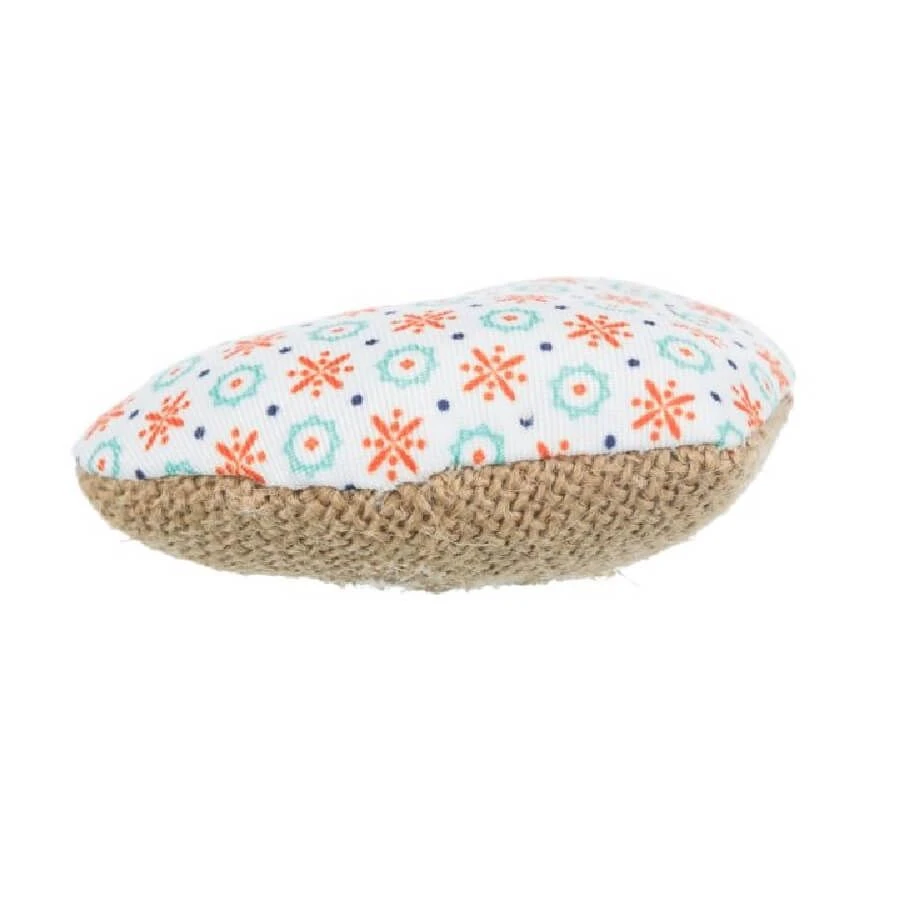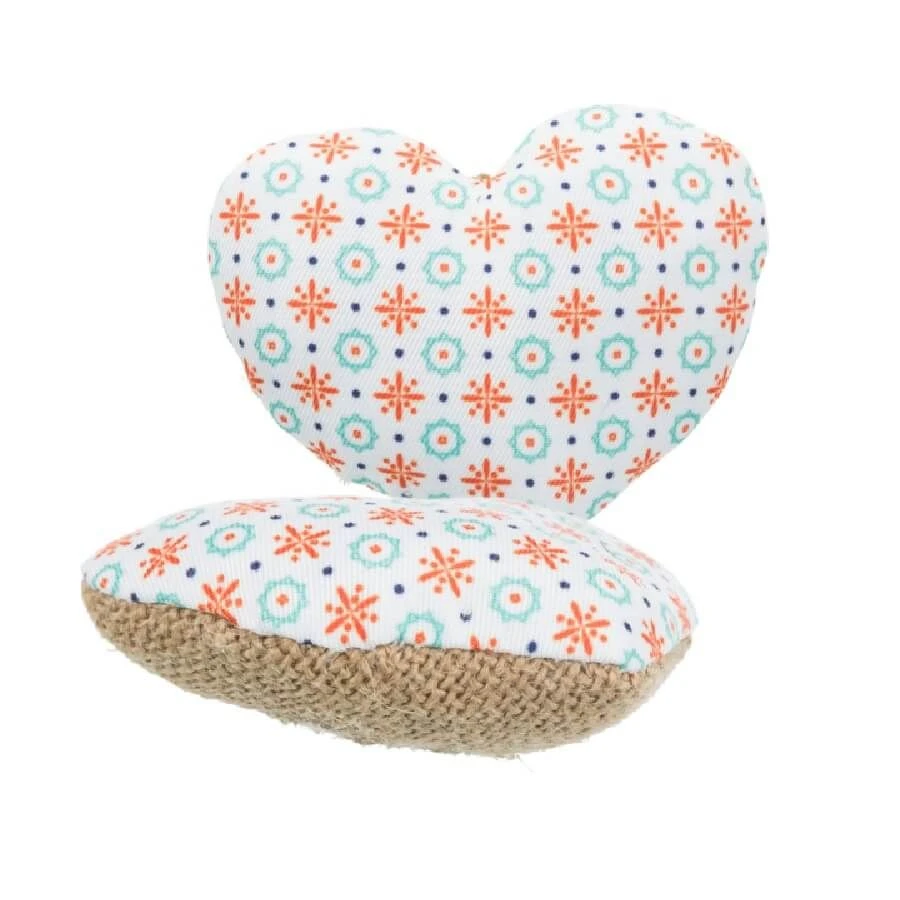 Ce petit coeur en toile de jute et à petits motifs colorés et fantaisie, sera un jeux attractif pour votre matou. Il contient de l’herbe à chat pour offrir un bon moment à la fois euphorisant puis relaxant par la suite.